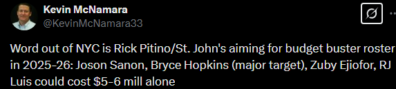 Related to the insurance topic in that article, I have long been a critic of the NCAA for not allowing schools to purchase insurance polices for their players in case they have a career ending injury. This came up back when Michael Vick left college early to go pro. Of course he wasn't going to stay in school for free and risk an injury versus taking the pro money. With NIL, etc. payments, this isn't as big of a deal, but, could still be used as an incentive to keep kids in school until they finish their degree if they were insured against a career ending injury.Not sure that I fully understand the details of this but thought I'd pass the "gift" article from the Washington Post insofar as it addresses how the Bonnies are dealing with covering costs of paying players: