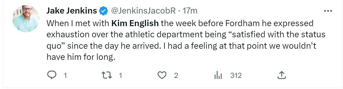 I wish English success moving forward. I think he did a good job here, and I think he represented the school with class, and I hope we hire somebody even better after him.